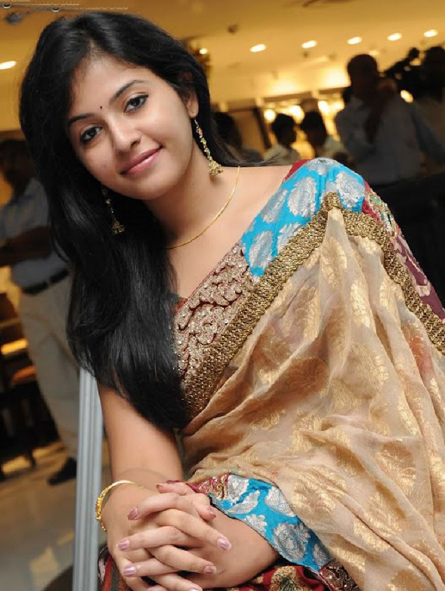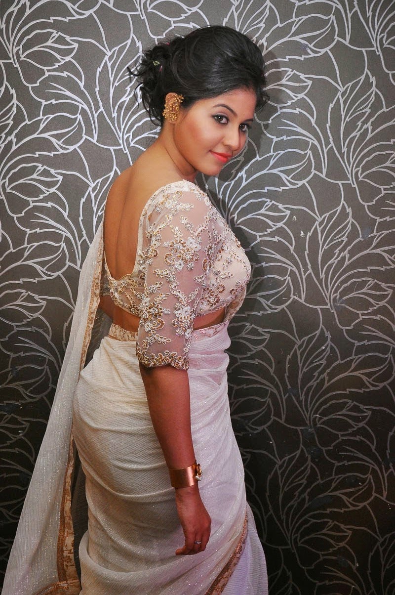 Actress Anjali Photos In Saree - It is paired with mustard designer short sleeves saree blouse with wide neck pattern.